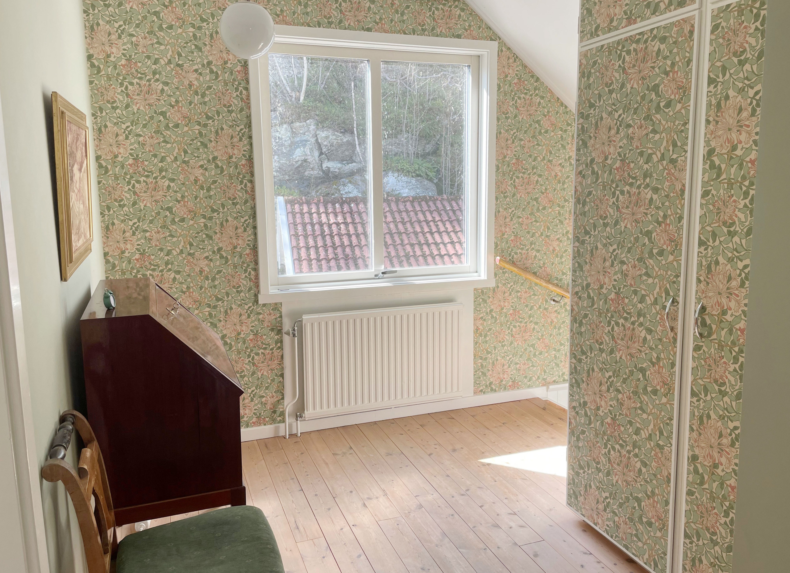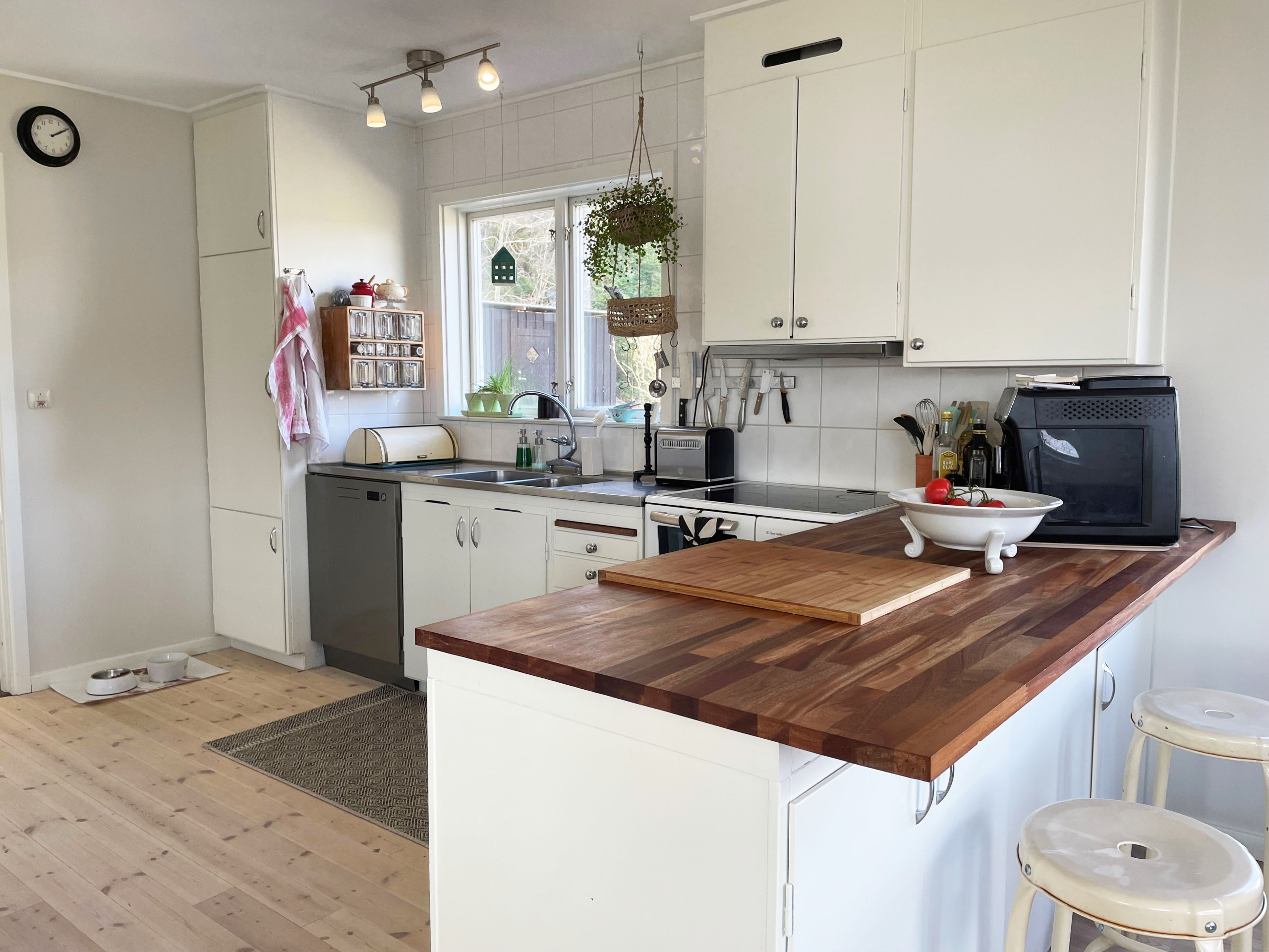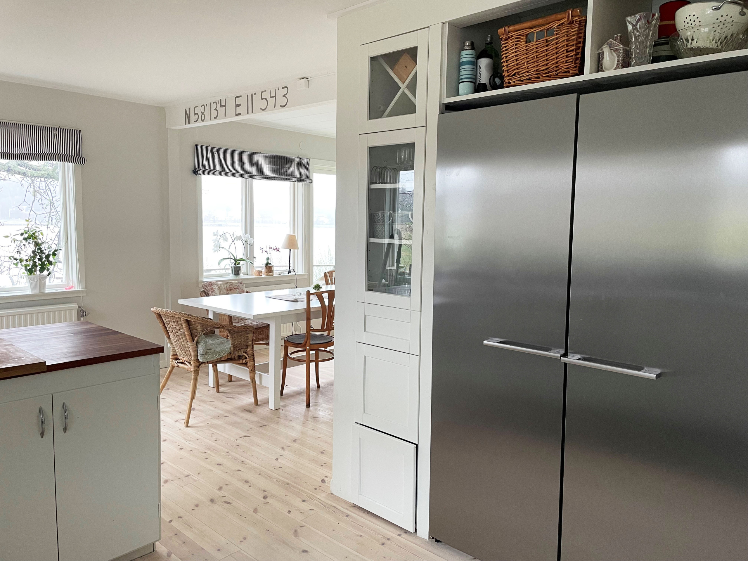 Vacker villa precis vid vattnet i 3 plan. På första våning hittar ni köket. Funktionellt och välutrustat med goda arbetstytor. I direkt anslutning till köket ligger en trevlig matplats och allrum där du kan njuta lugna kvällar framför brasan. Här finns även en toalett. På andra våning finns 3 sovrum och en toalett. Från ett av sovrummen har ni utgång till balkongen. I källaren finns ett stort vardagsrum med 3 sovplatser, badrum och tvättstuga.