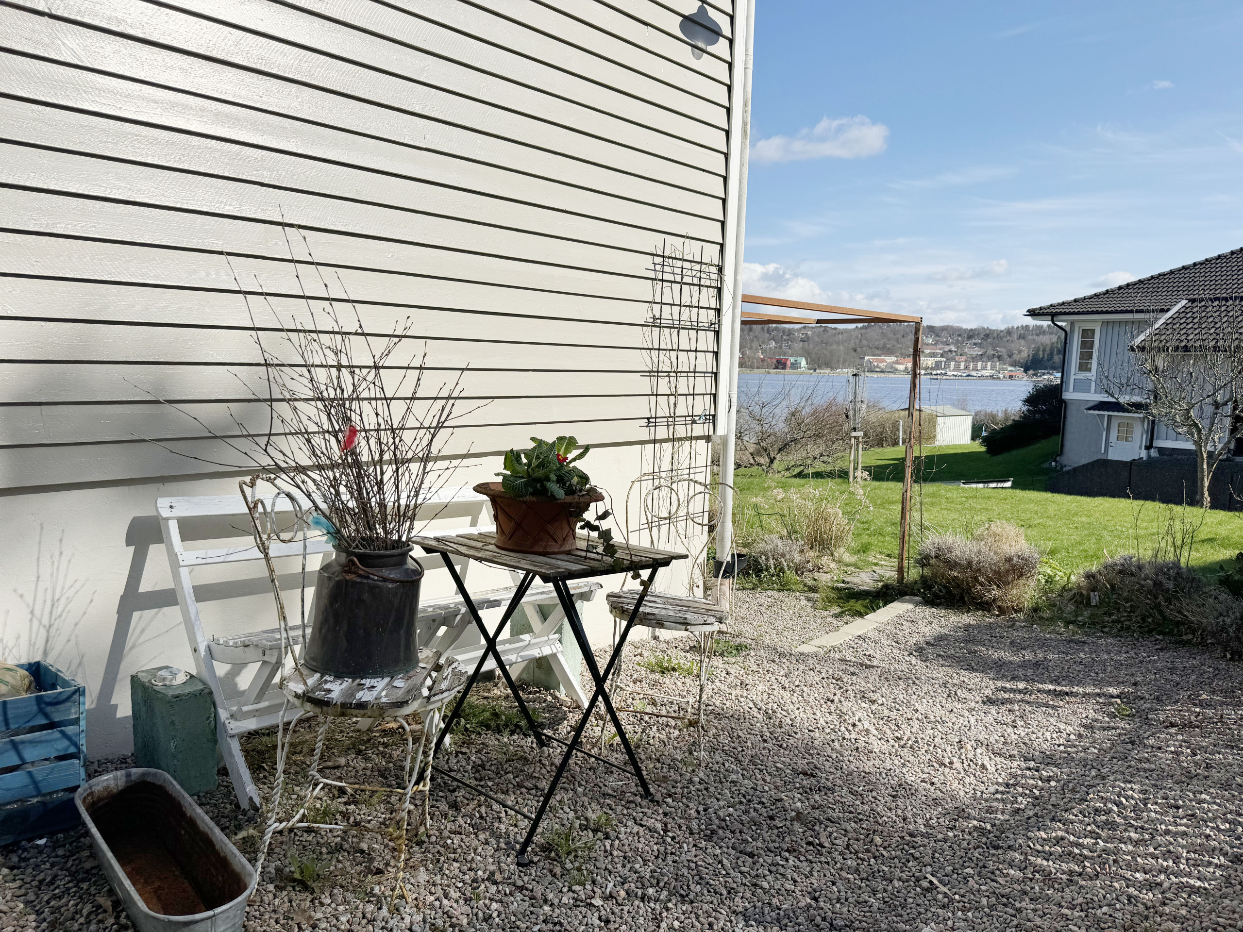 Härlig uteplats med havsutsikt. Här kan ni sitta och njuta av varma, sköna dagar i solen och ha mysiga grillkvällar. Trevlig trädgård för barnen att leka i.