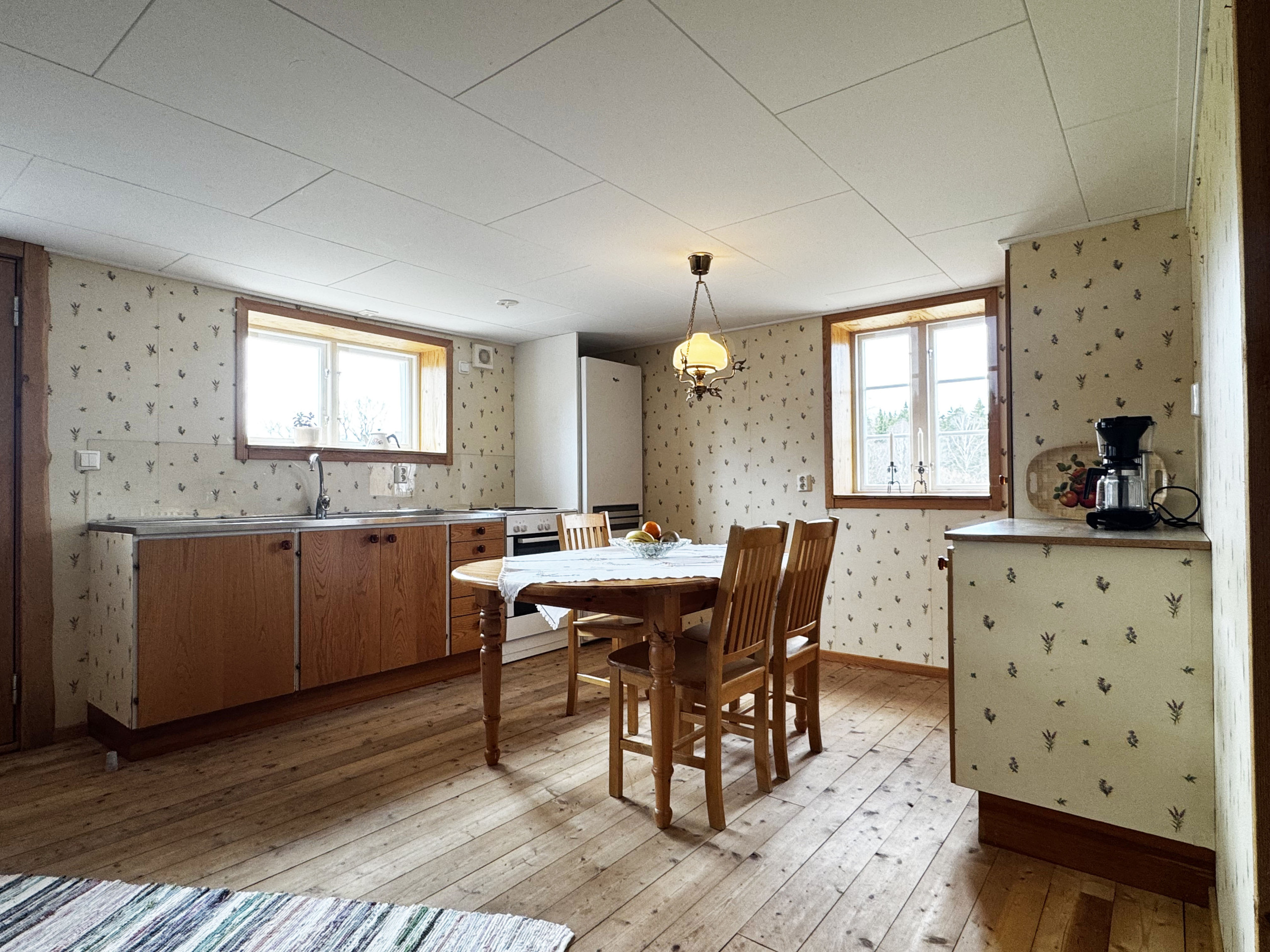 Boendet rymmer upp till 6 personer – ett sovrum med två enkelsängar, en bäddsoffa för två i allrummet, samt en extra enkelsäng och en barnsäng (för barn under 12 år). Köket är funktionellt och utrustat med extra arbetsytor för matlagning.