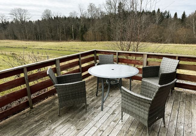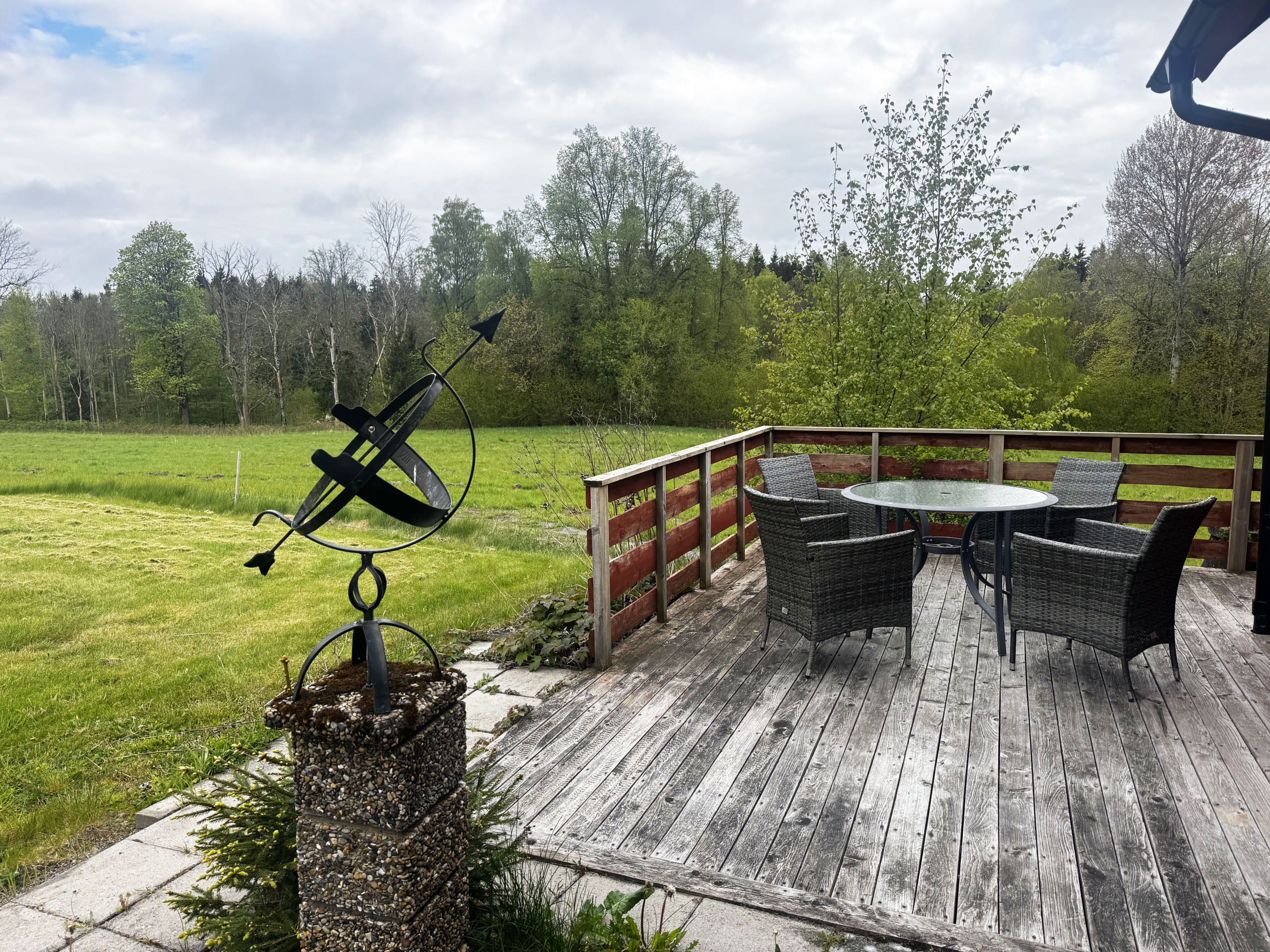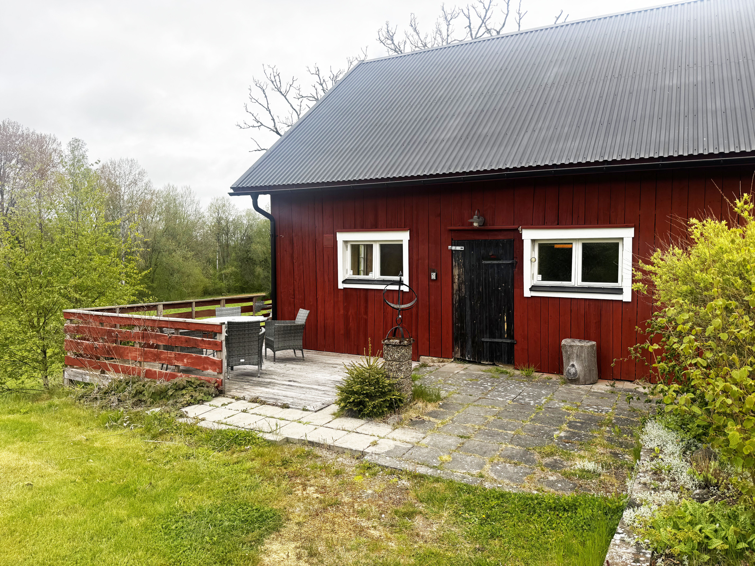 Ute finns en härlig grillplats med utsikt över ängar och skog – en idealisk plats för långa sommarkvällar.