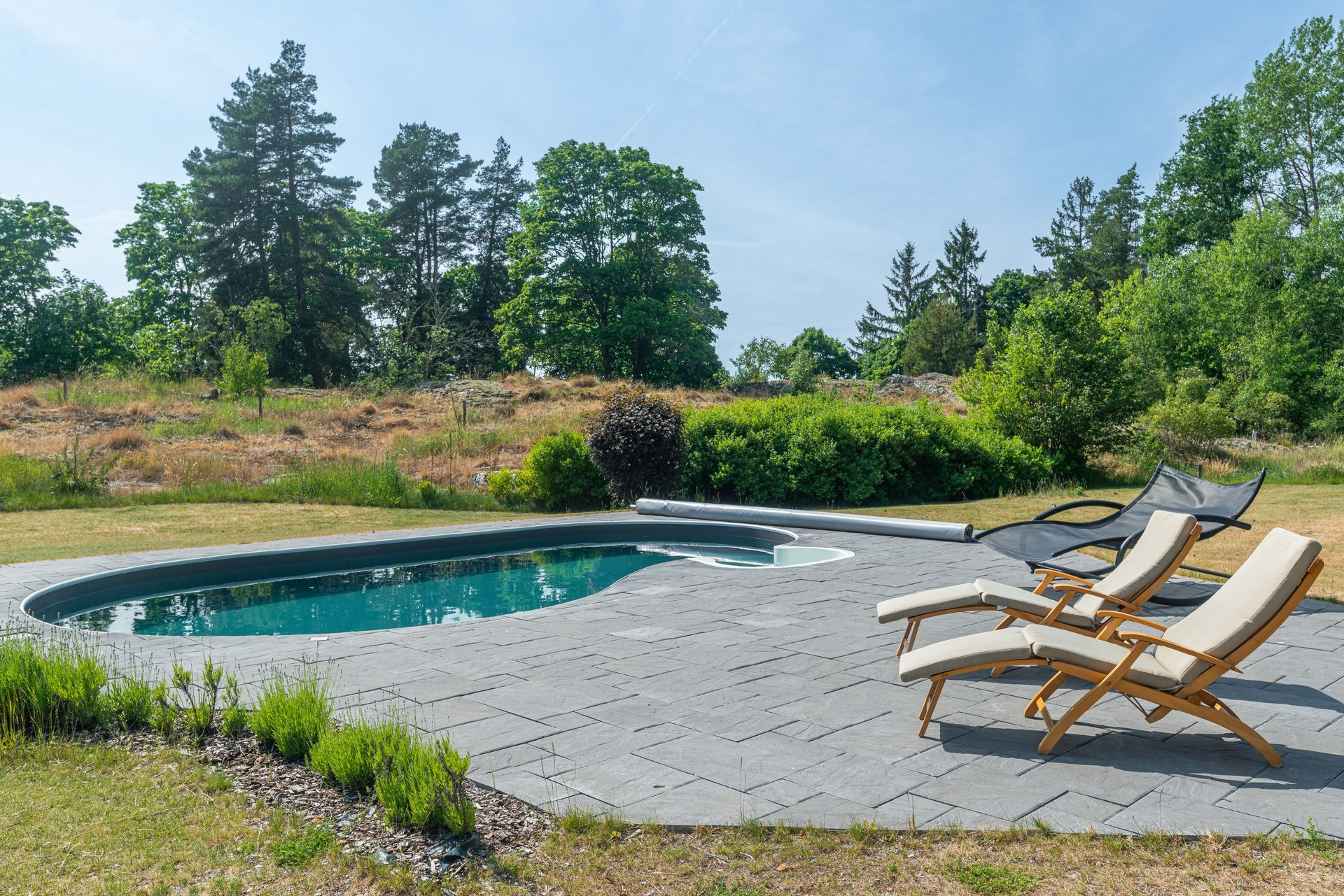 Vid huset finns en utomhuspool på 37 kvadratmeter som är 1,4 meter djup. Den är uppvärmd från midsommar till september. Trevlig altan med grill för mysiga sommarkvällar. Huset ligger lugnt och fridfullt med stor tomt där barn och husdjur har stora grönområden att röra sig på. En mysig braskamin finns också i huset.