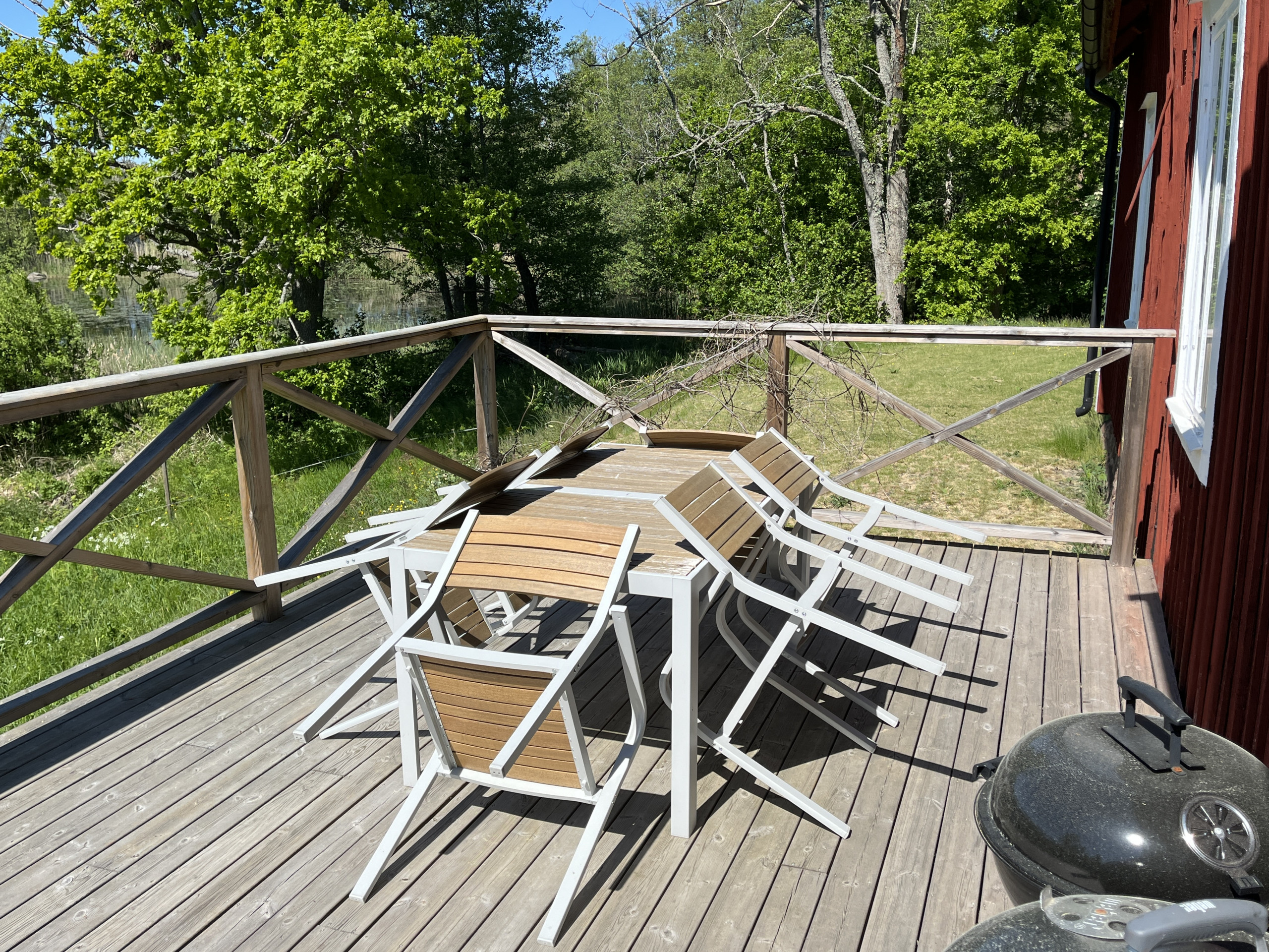 Stor hus som erbjuder en fantastisk utsikt över Emån. Bara 20 meter bort ligger roddbåten om ni vill ta en fisketur eller ta ett svalkande dopp under varma sommardagar. På första våning ligger köket som är modernt och fullt utrustat med allt du behöver för att laga goda måltider. Intill ligger matplatsen med utgång till altan däcket där kan ni grilla, sitta och äta eller bara njuta av utsikten. Mysigt möblerat vardagsrummet. Här nere finns även två av sovrummen två enkelsängar i varje. Vid entrén ligger ett stort och fint badrum. På andra våning finns ytterligare tre sovrum med två våningssängar i det ena och två enkelsängar i de andra två.