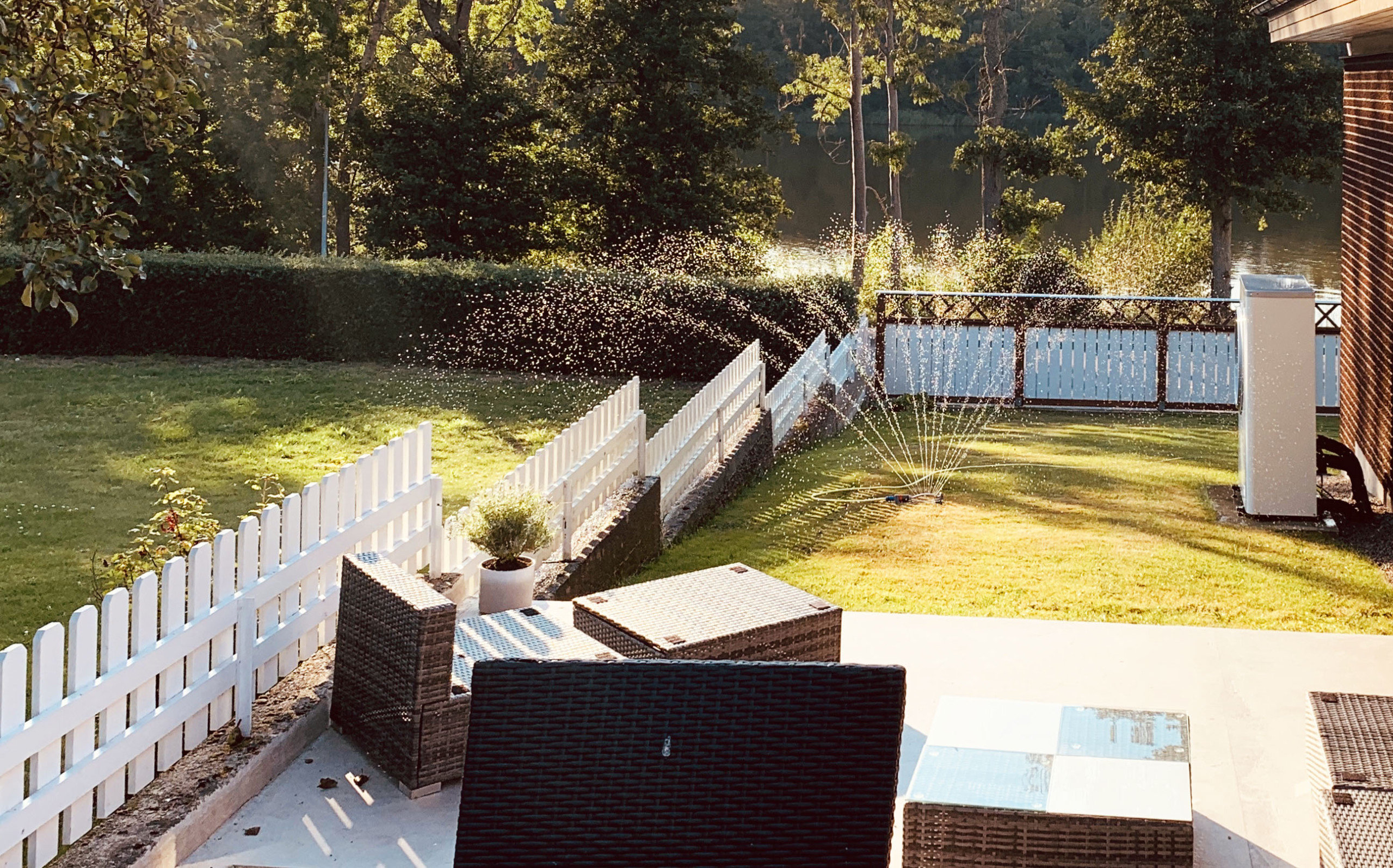 Efter en härlig dag på stranden eller efter en utflyktsdag är det skönt att koppla av framför grillen med något gott i glaset och se solen gå ned över sjön.