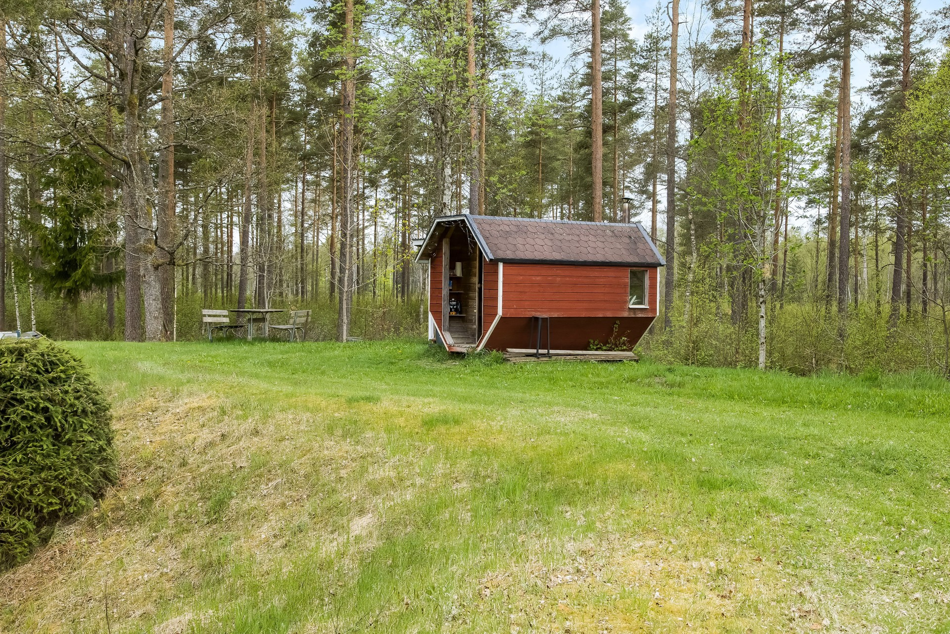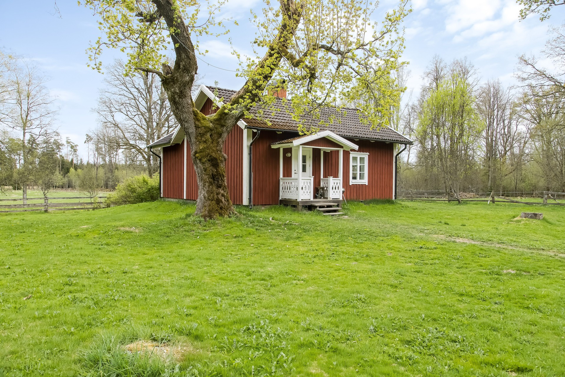 Stugan i Mårarp är en genuin röd stuga från 1929, belägen i ett rofyllt landskap mellan Ljungby och Växjö. Här möts du av en varm och personlig atmosfär där det gamla bevarats samtidigt som viktiga delar har renoverats varsamt. Huset erbjuder ett nyare kök och badrum samt uppfräschade ytskikt, men har kvar sin ursprungliga planlösning och charm. Boendet passar perfekt för familjen eller sällskapet som söker lugn, natur och en äkta svensk stugupplevelse. Här finns plats för upp till 4 personer fördelat på två sovrum, varav ett öppet loftliknande sovrum med en dubbelsäng och ett separat sovrum med två enkelsängar samt spjälsäng. Vardagsrummet bjuder in till avkoppling med soffa, fåtölj och TV, medan matsalen ger utrymme för gemensamma middagar och spelkvällar. Köket är fullt utrustat för både enklare måltider och bakning. Ett extra allrum med utgång mot trädgården skapar en naturlig samlingsplats för både barn och vuxna. Den stora trädgården och angränsande skog ger gott om plats för lek och upptäckter. Här finns även lekställning, utemöbler, grill och möjlighet till aktiviteter som kubb och cykling. Värt att notera är att vattnet i huset innehåller järn vilket ger en brunaktig färg. Det är fullt säkert att använda till dusch och disk, men dricksvatten rekommenderas att tas med eller köpas.