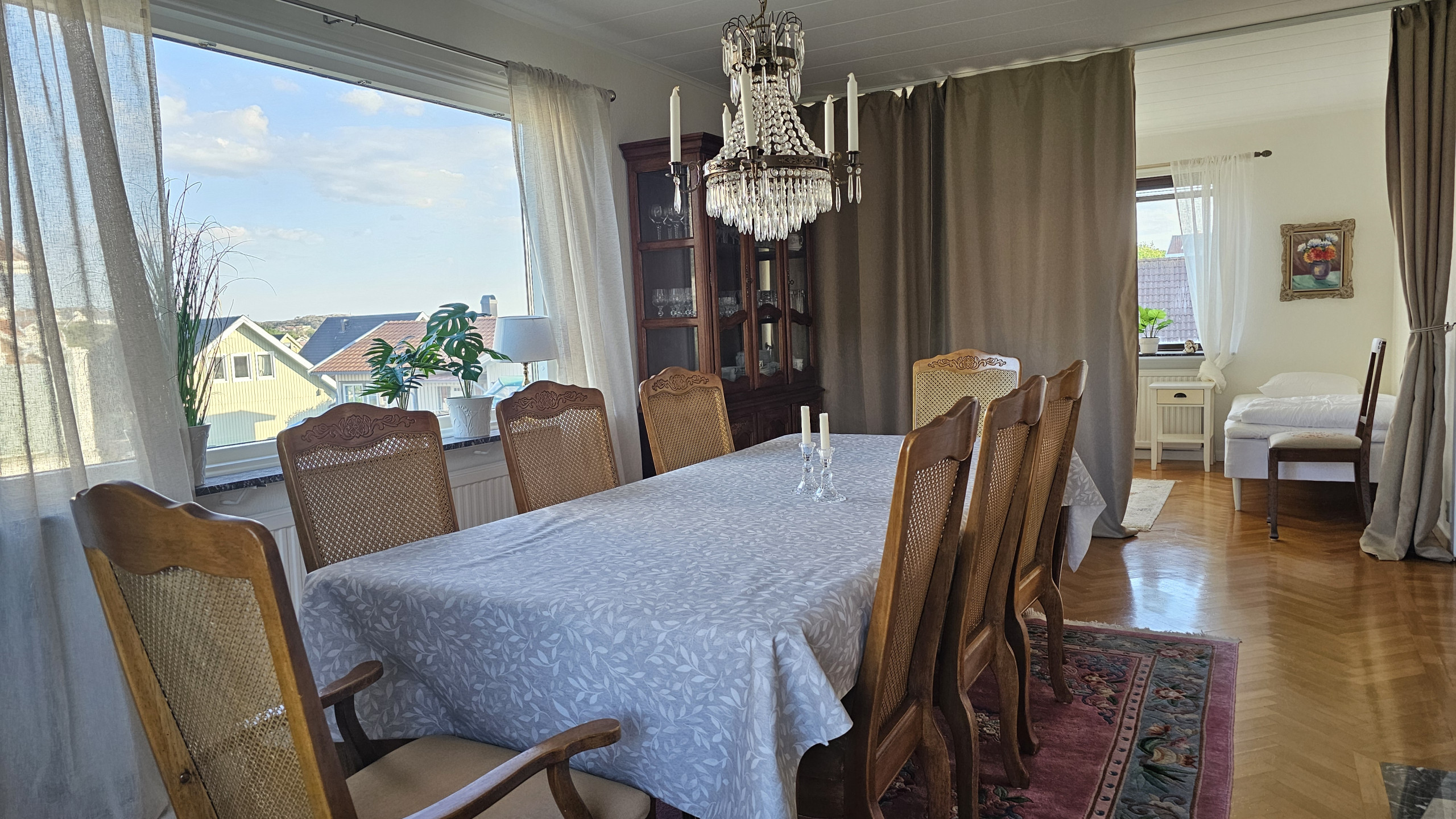 Välkommen till ett stort och hemtrevligt hus i hjärtat av Skärhamn. Här finns gott om plats för den stora familjen eller två till tre mindre familjer som vill bo nära hav, restauranger och allt som detta populära kustsamhälle erbjuder. Huset har tre våningar med fyra sovrum, tre toaletter och två duschar samt både uterum och altan. Totalt finns elva bäddar fördelade på generösa och funktionella ytor. Läget är perfekt för en semester där ni kan lämna bilen, ta morgondopp vid klipporna, strosa till bageriet för nybakade frallor och njuta av ett lugnt område trots närheten till centrum.