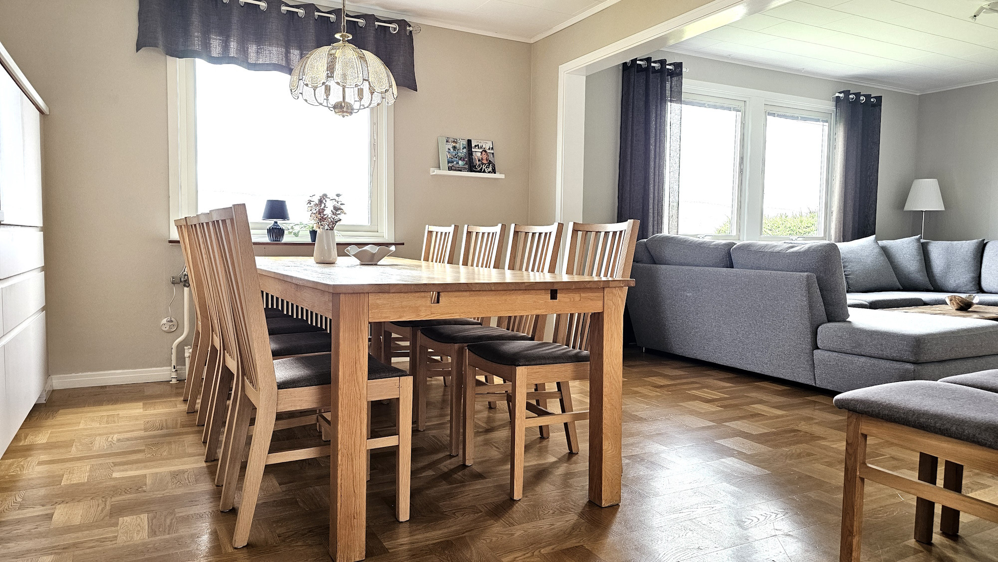 Välkommen till denna fantastiska villa där hav, berg och skog möts i en harmonisk kuliss. Här bor du med en svårslagen utsikt och endast 30 meter till din egen privata brygga – en plats där du kan börja dagen med ett dopp i havet eller avsluta kvällen med solnedgångens speglingar över vattnet. Huset är rymligt och bekvämt med plats för upp till 10 gäster, fördelat på tre sovrum och två toaletter. Den öppna planlösningen mellan kök och vardagsrum bjuder in till sociala stunder och gemensamma måltider. Det stora uterummet fungerar som ett extra sällskapsutrymme där du kan njuta av utsikten oavsett väder. Här finns alla bekvämligheter du behöver – ett fullt utrustat kök, tvättstuga, Wi-Fi och TV med Chromecast. Utomhus väntar flera uteplatser, grillmöjligheter och naturligtvis bryggan som är husets hjärta. För barnen finns en liten naturstrand bara 100 meter bort. Huset välkomnar husdjur vid förfrågan, vilket gör det perfekt även för familjer med fyrbenta vänner.