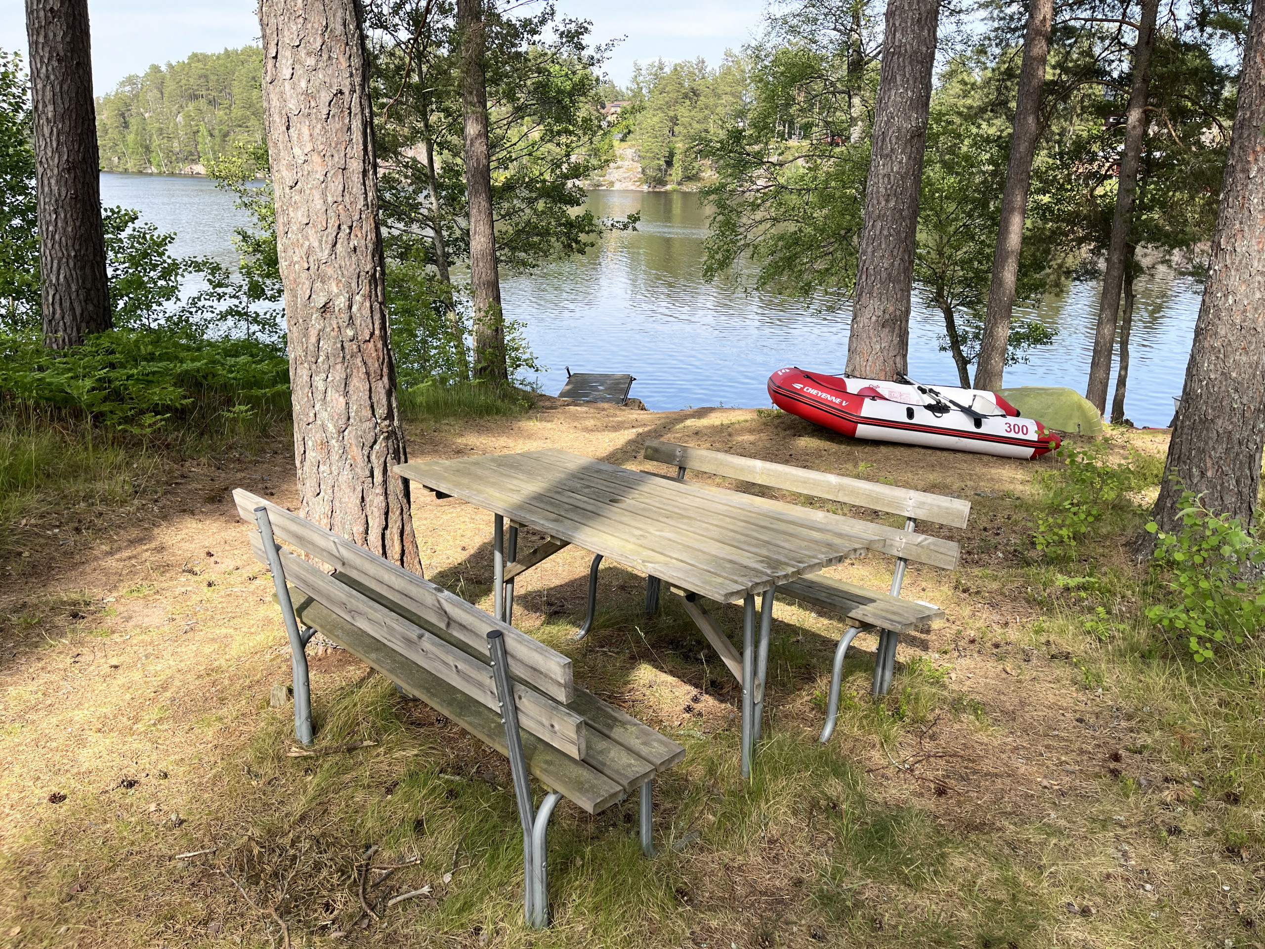 På bara några minuters promenadavstånd hittar ni en vacker liten badplats vid Stångåns damm – perfekt för en lugn stund vid vattnet.