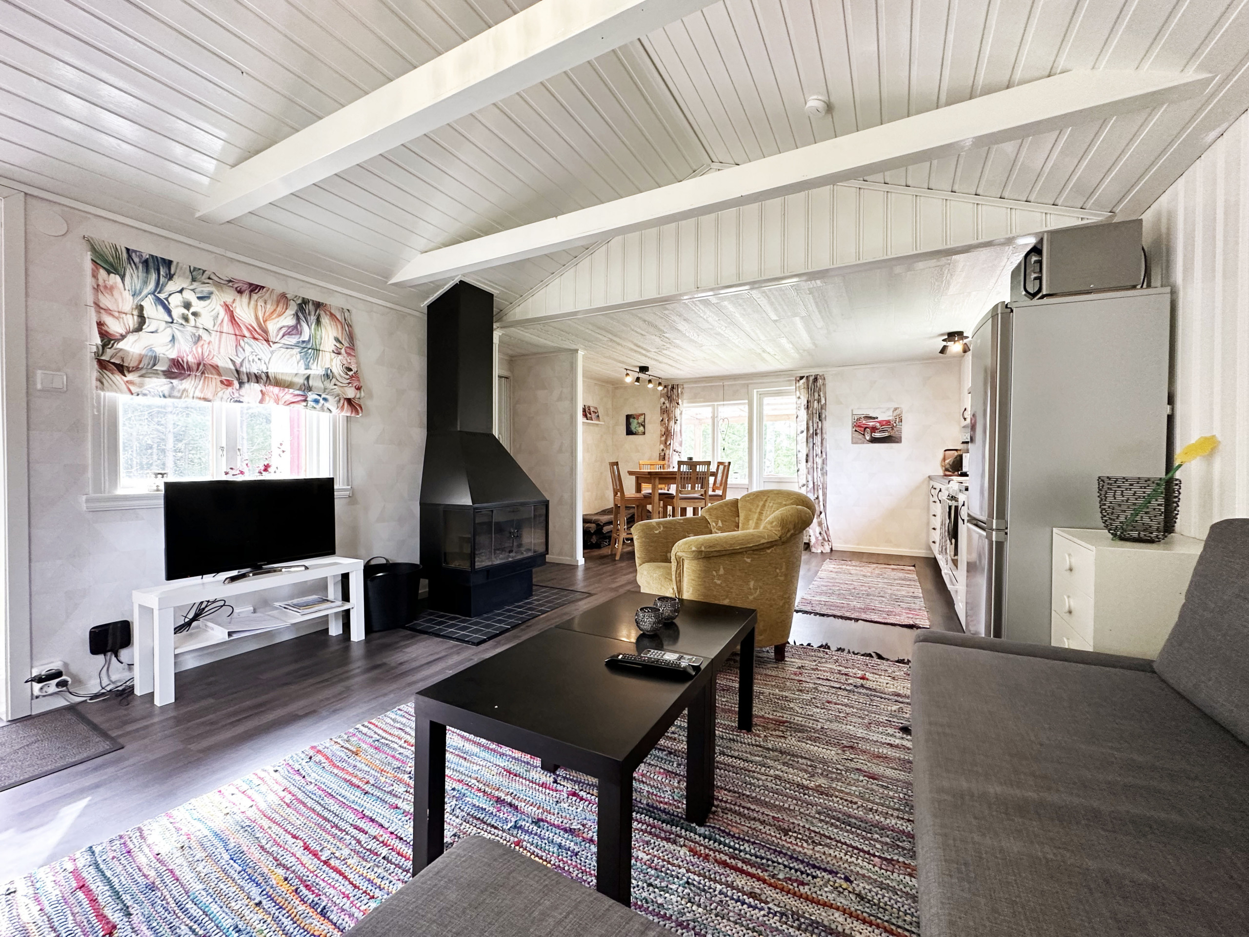 Nära till en mycket fin och familjevänlig badplats med brygga, grillplats och lekredskap såsom gunga och rutschbana. Skog och mark runt stugan är rik på bär och svamp.