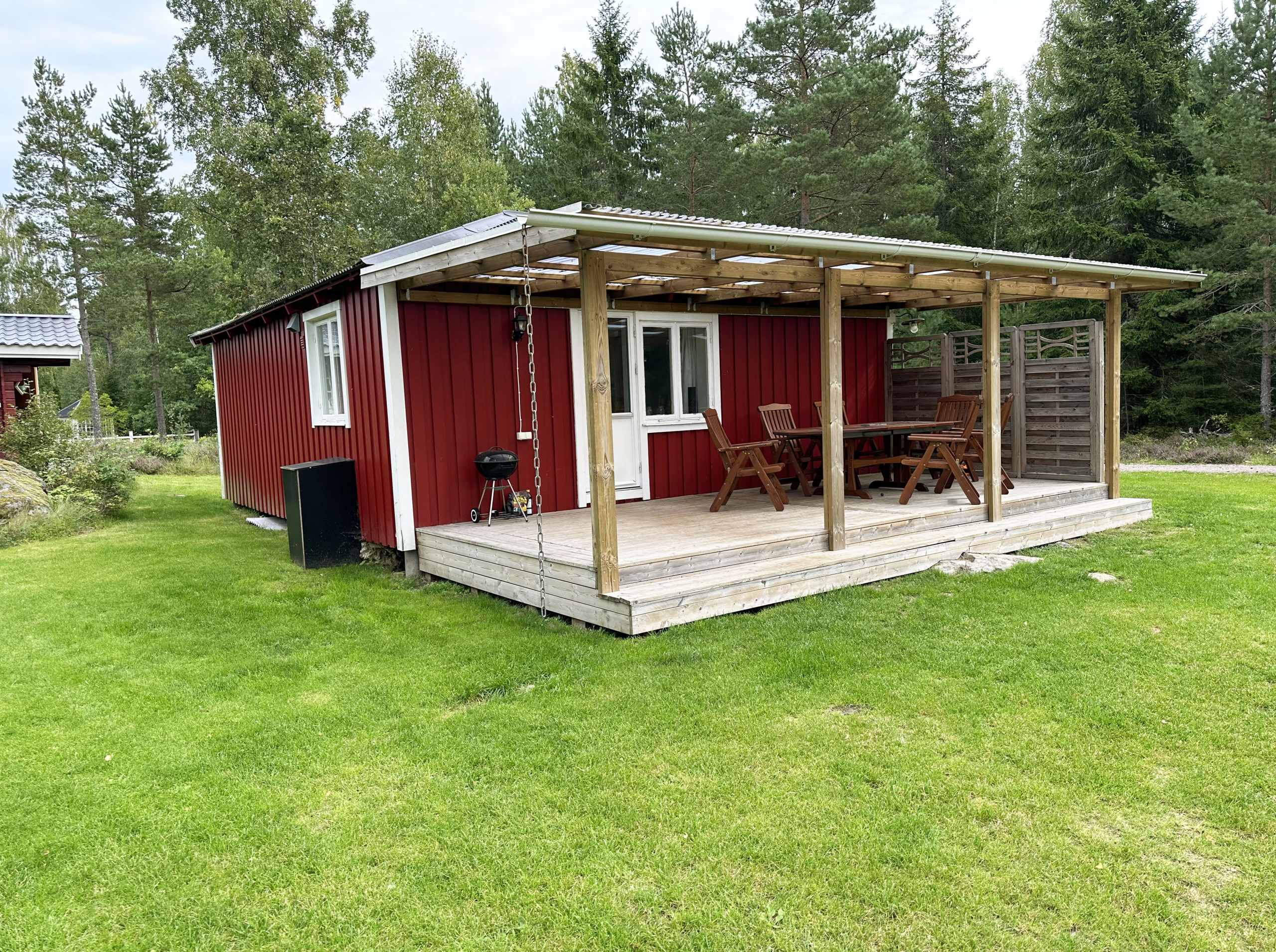 Välkommen att hyra stuga i Timmersdala med endast 300 meter till sjön! Här har ni tre stugor till ert befogande vilket passar till exempel perfekt om ni reser i flera sällskap. Centralt ligger storstugan med ett väl tilltaget allrum med braskamin i angränsande ett rymligt välutrustat kök med bardisk. I semesterboendet finns ett sovrum med dubbelsäng. Härlig överbyggd terrass med trädgårdsmöbler och grill. I annexet finns ett mycket fräscht sovrum med två enkelsängar och ett badrum med dusch. Nästa annex innehåller en dubbelsäng.