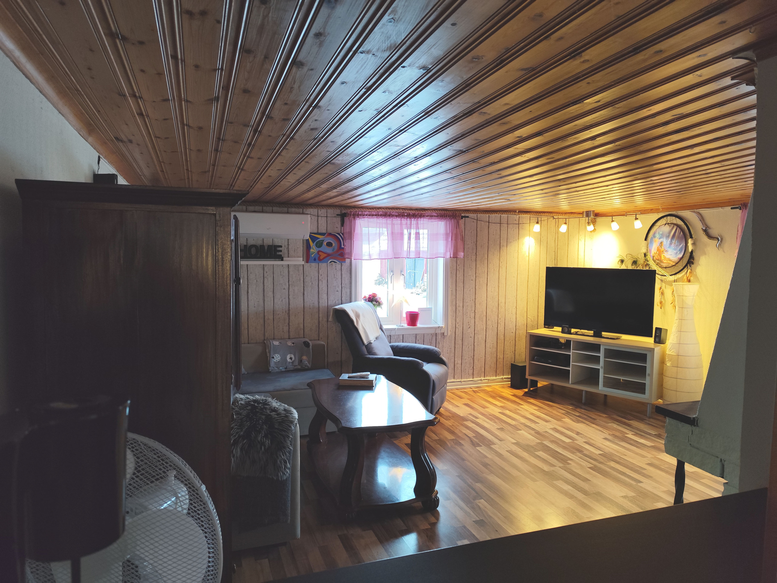 I vardagsrummet finns en bäddsoffa för 2 personer.
