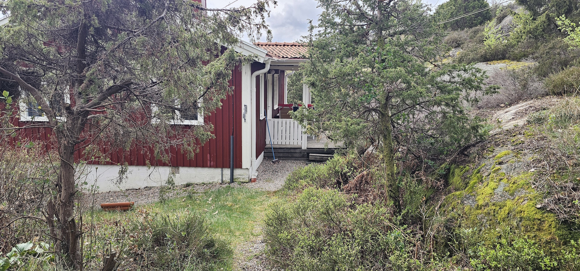 Utomhus finns två härliga sittplatser, en under tak och en vid husets gavel, där du kan njuta av morgonkaffet eller en grillkväll i kvällssolen. Den stora tomten (ca 2000 m²) ramas in av dramatiska bohusklippor och mjuk grönska – perfekt för barnlek, naturälskare och avkoppling. Tre parkeringsplatser finns på tomten och huset är djurvänligt, så även hunden är välkommen.