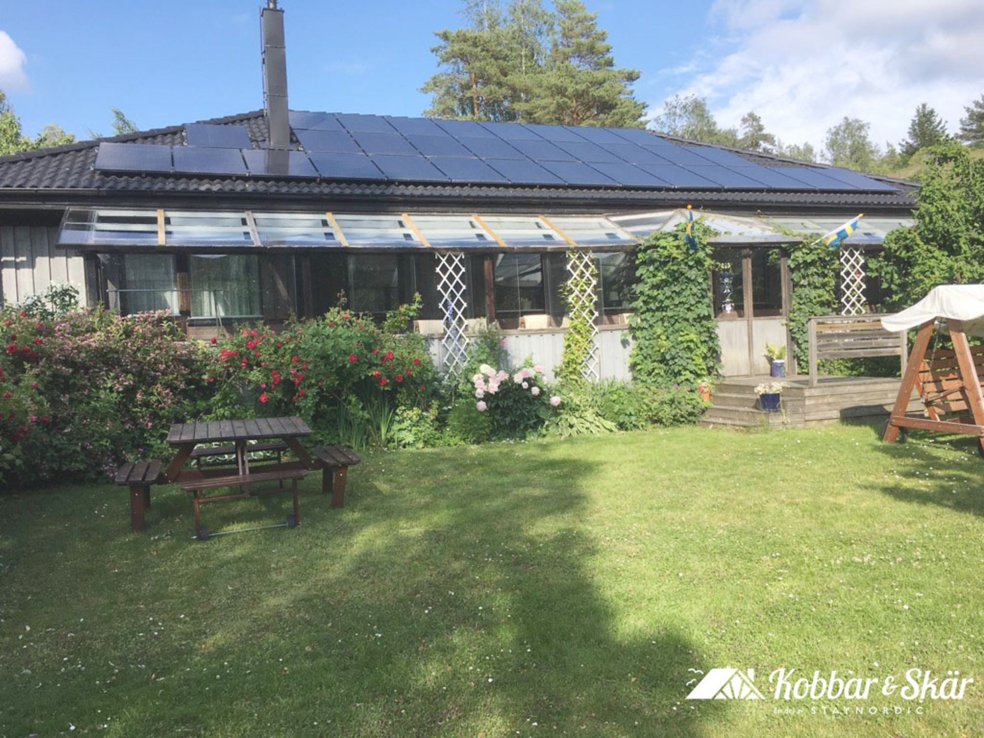 Detta är ett stort och praktiskt hus på södra Orust med plats för upp till 8 personer fördelat på 4 sovrum. Här bor ni bekvämt om ni är många, exempelvis två familjer eller en större grupp som vill semestra tillsammans. Huset är av enklare standard och inredningen och möbler är äldre. Här är det inte lyxen som står i fokus utan ytorna, funktionaliteten och möjligheten att umgås. På entréplan finns kök med diskmaskin och matplats, vardagsrum samt tre sovrum. Här finns också badrum med dusch och en tvättstuga. Från vardagsrummet når ni ett inglasat uterum som förlänger säsongen och ger en extra plats att samlas på. I källarplan finns ytterligare två sovrum, en gillestuga med TV samt bastu med tillhörande dusch och omklädningsrum. Perfekt efter en dag vid havet eller ute på utflykt. Tomten är stor och passar bra för lek, spel och sommaraktiviteter. Läget är bra för att upptäcka både Orust och Tjörn. Havet ligger endast ca 3.5 km bort och nås enkelt med cykel.