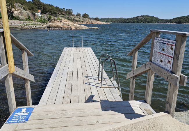 För den som vill utforska området finns det gott om promenadstigar och cykelvägar, och den populära badplatsen nås via en kort promenad genom grönskan. Här väntar bryggor, sandstrand och salta dopp, precis som en sommar i Bohuslän ska vara.