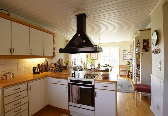 Huset är välutrustat med flera faciliteter såsom funktionellt kök med stora arbetsytor, två badrum, varav ett är utrustat med bastu, vardagsrum med öppen spis och direktutgång till stor altan med många sittplatser i sköna möbler. En skyddad miljö väl lämpat för barnfamiljer. Barnstol och resesäng ingår.