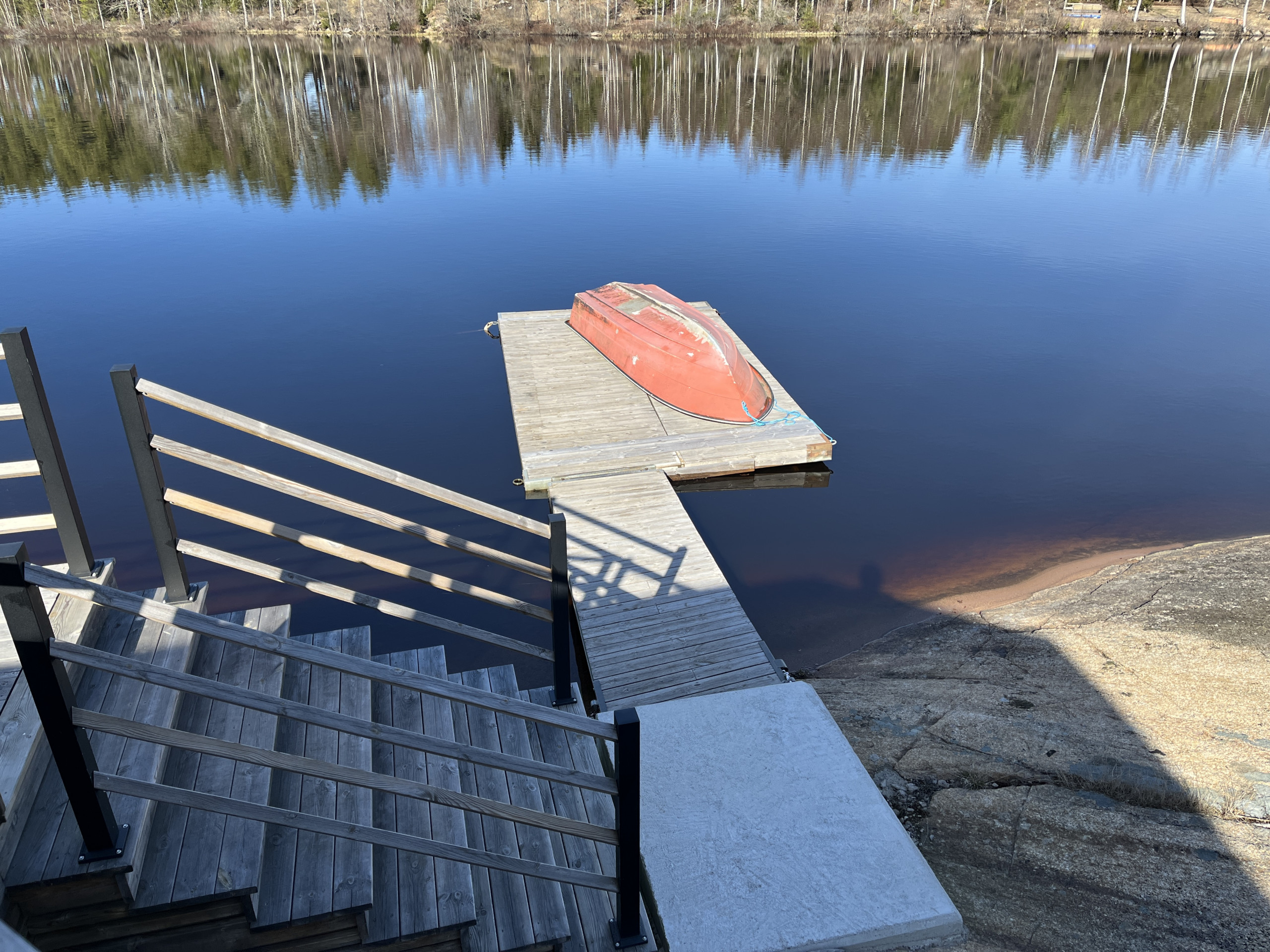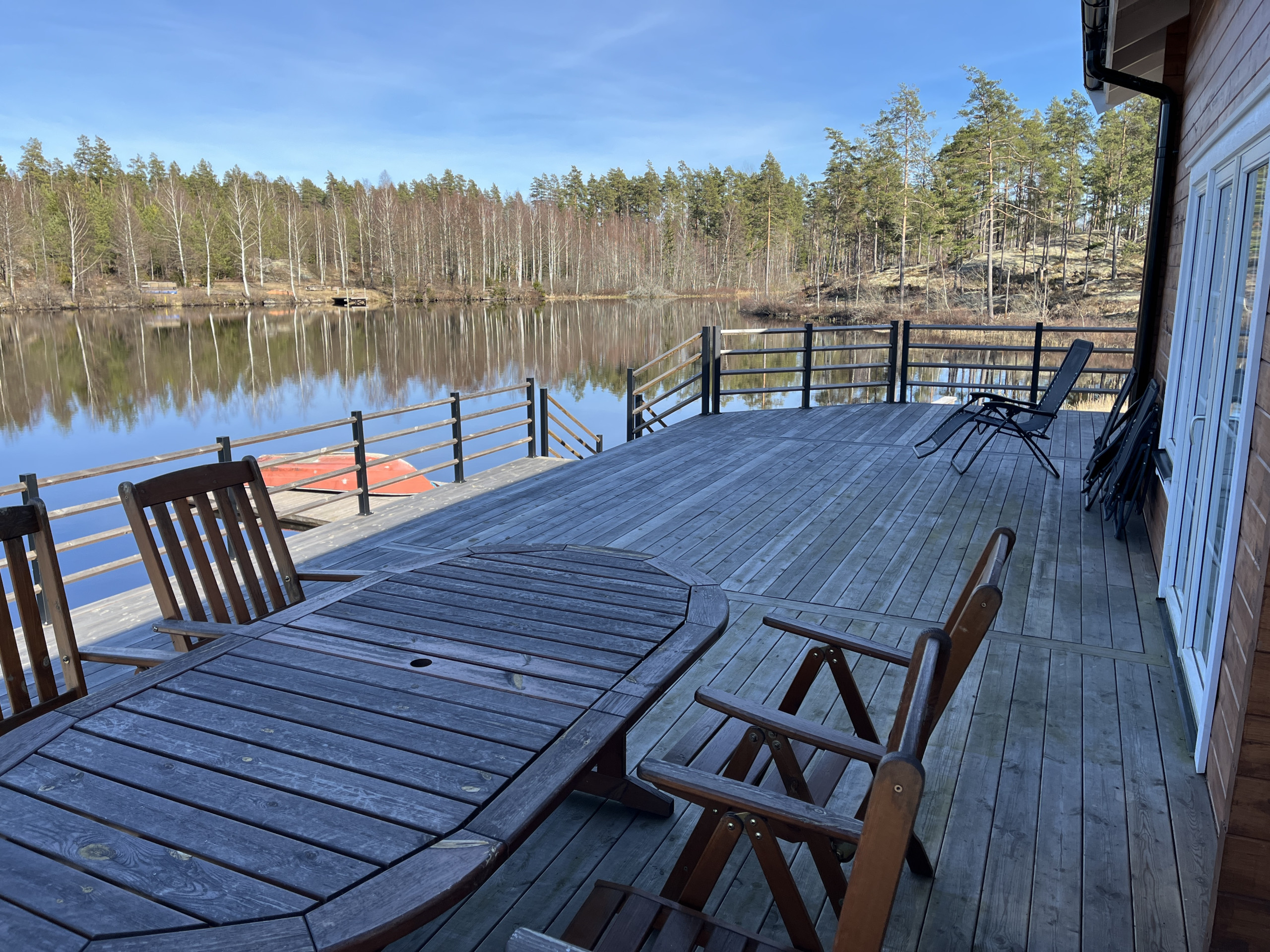 På det generösa altandäcket kan du njuta av lugnet och den vackra utsikten över vattnet. Ta ett uppfriskande morgondopp, en stillsam roddtur med båten som finns vid bryggan, eller samla familj och vänner för en grillkväll i solnedgången. Nybyggd bastu med härlig sjöutsikt finns att nyttja. Här finns även bekväma utemöbler och en grill – allt med sjön som fond.
