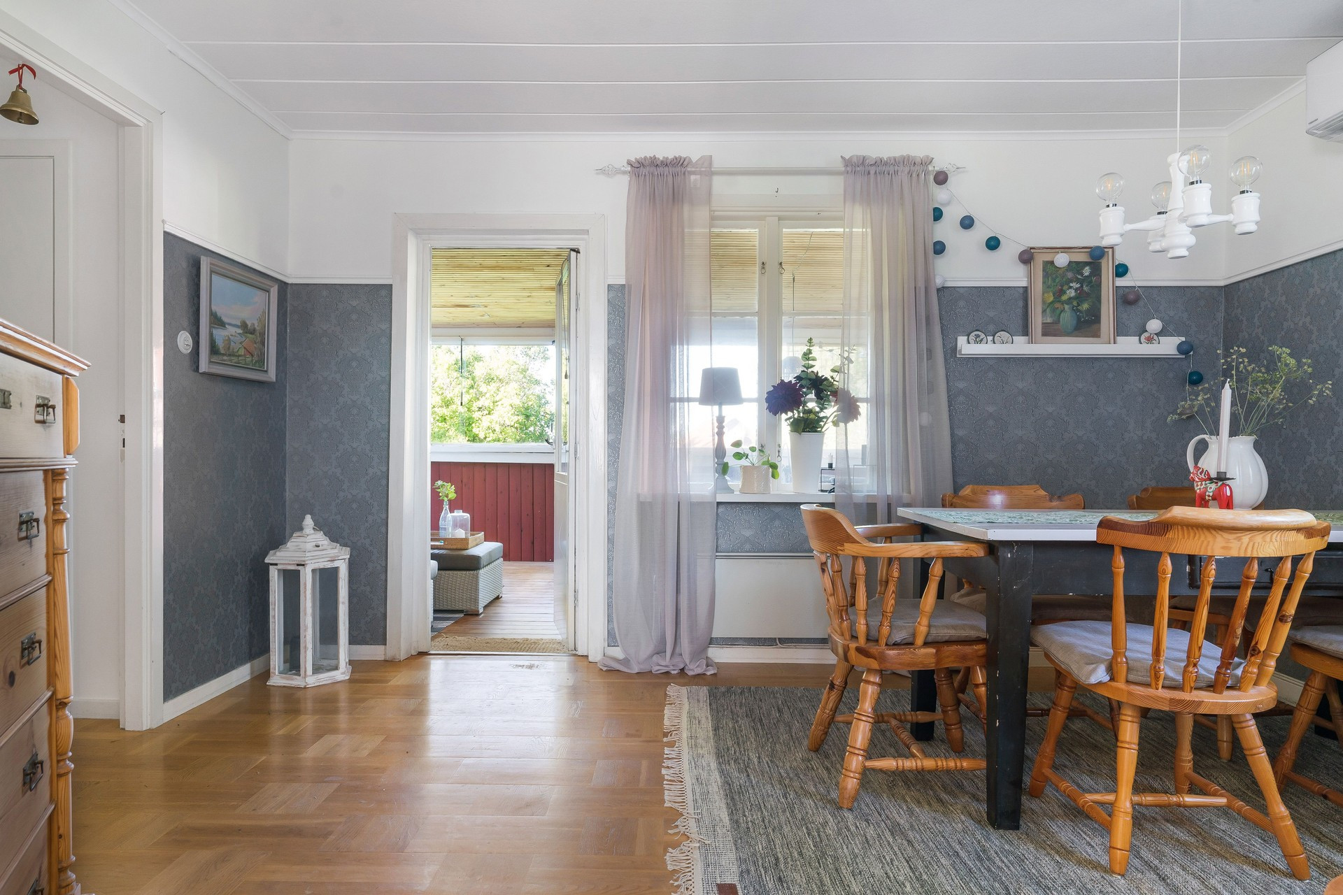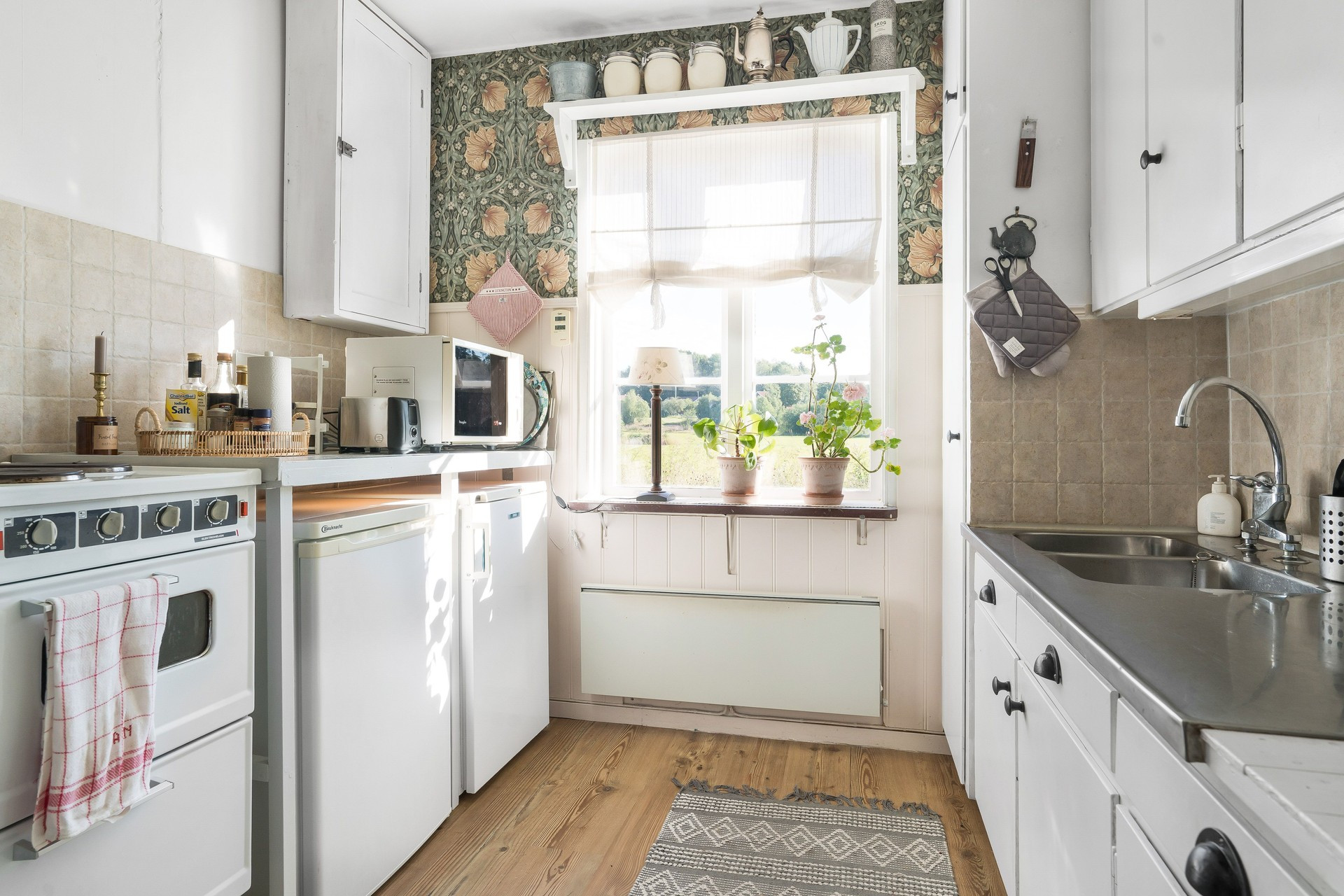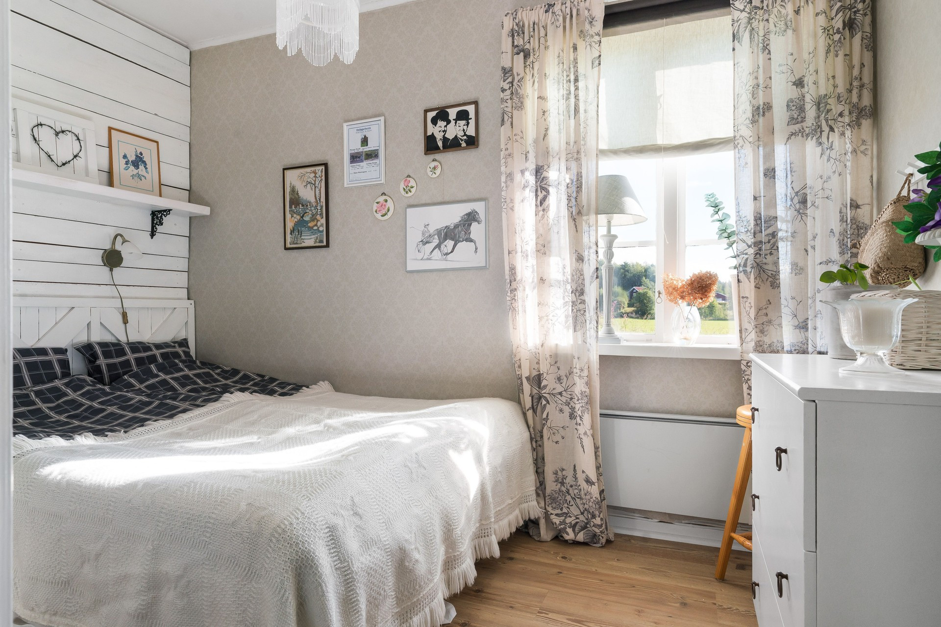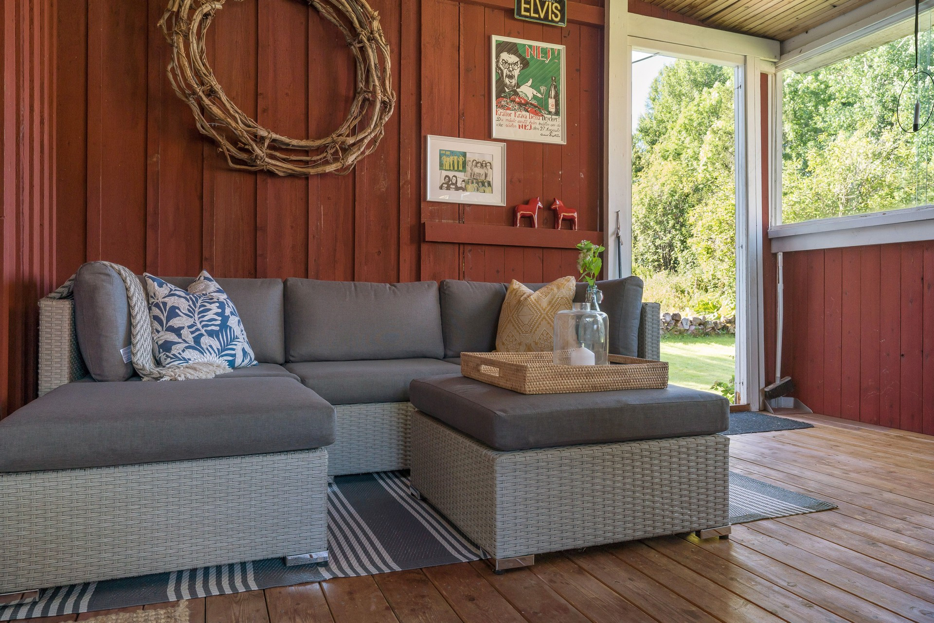 Stugan har plats för fem gäster med sina tre sovrum, varav två har varsin dubbelsäng och det tredje har en enkelsäng. Det finns ett rum med toalett och ett annat med dusch i huset. I det mysiga lilla vardagsrummet finns soffa och TV för lugnare kvällar. Köket är ljust och har det mesta, dock ingen diskmaskin, men det vägs upp av dess charm och vackra inredning, perfekt för att tillaga familjemiddagen. Det finns också en grill om man vill anstränga sig lite extra för en somrig måltid. Duka sedan upp på bordet i det inglasade uterummet och njut av maten med utsikt över den fina trädgården.