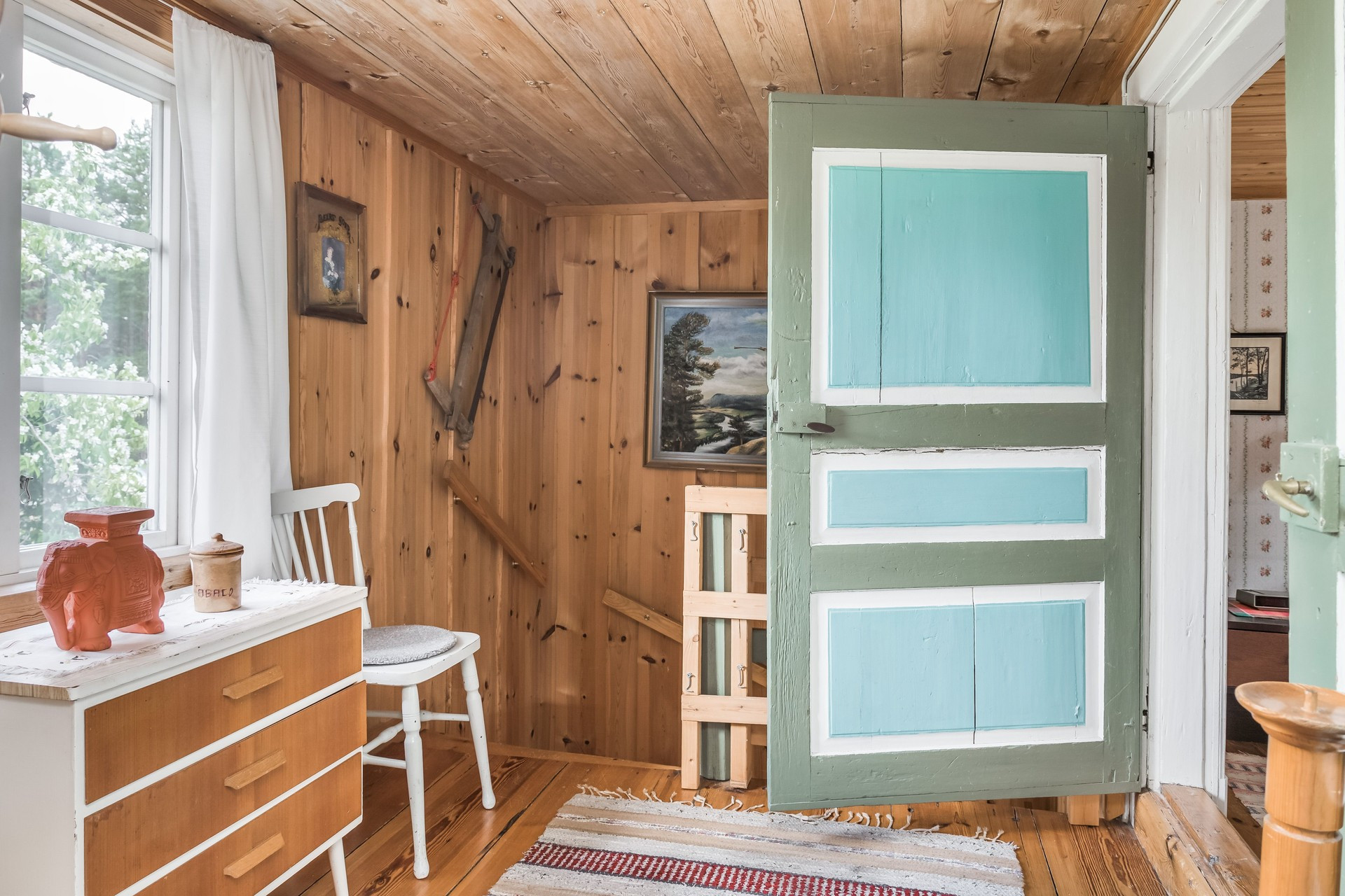 Välkommna till den här lantliga stugan med stor trädgård och en sjö med brygga på promenadavstånd. Stugan har två plan och två sovrum med sovplatser för sju personer plus dusch och toalett. Köket är litet men charmigt men trädgården är stor och här finns också en terass med med utemöbler för att kunna äta familjemiddagen utomhus om sommarkvällarna. Grill finns också om man vill ha grillkväll.